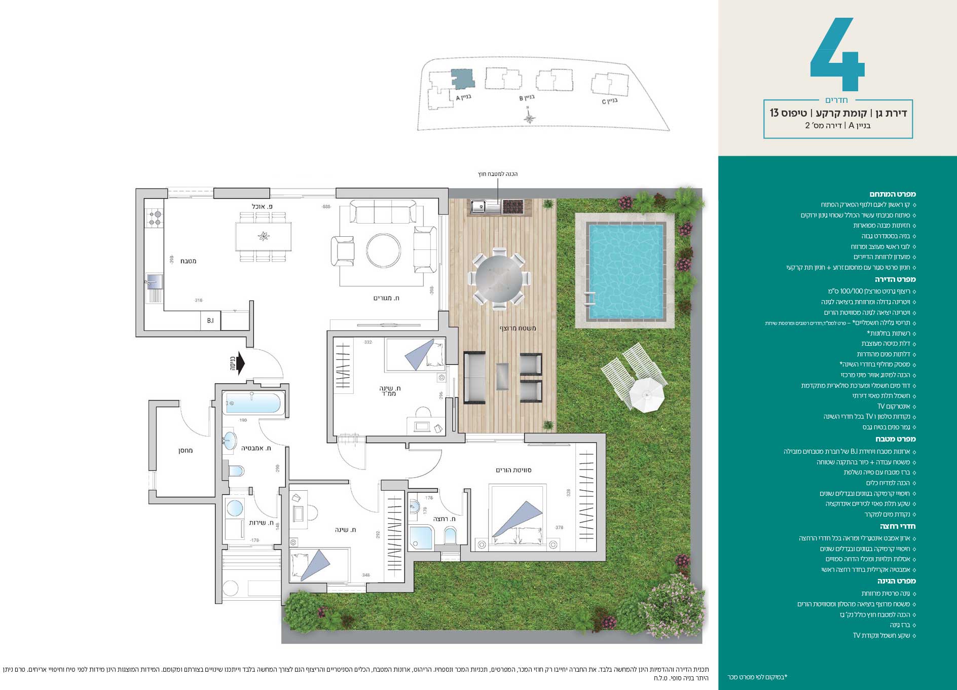 רביעיית הפארק, הוא פרויקט בוטיק יוקרתי שמציע לכם חוויית מגורים ברמה שלא הכרתם, עם תמהיל דירות מגוון, איכות בנייה בסטנדרט הגבוה ביותר ומפרט טכני עשיר. הפרויקט מאגד בתוכו 4 בניינים בני 5 קומות, הפרוסים על שטח מרווח של 6 דונם. בזכות תכנון אדריכלי מוקפד ואופטימלי בשיתוף משרד פישר אלחנני אדריכלים, יצרנו 46 דירות שכולן בעלות חלוקה פנימית מדויקת, עם נוף לאגם ומרפסות גדולות.